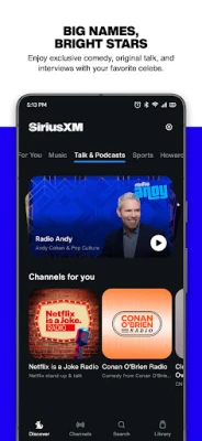 Expand your listening universe with SiriusXM. Explore live radio, ad-free music, podcasts, news, sports, comedy, and more. Get closer to your favorite stars with new and improved listening.